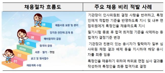 <채용절차 흐름도 및 주요 채용실태 적발 사례>