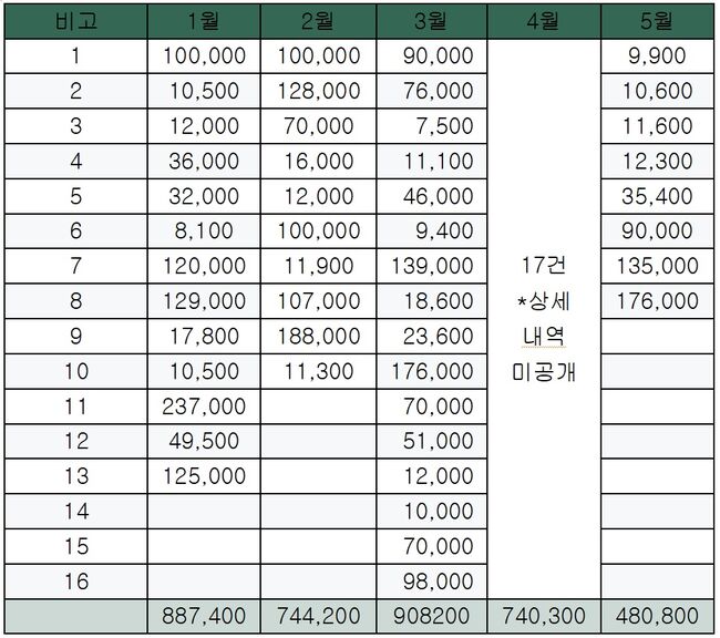 공단 공개자료에 따르면, 감사의 임기 종료 후인 2025년 1~5월 동안 법인카드 사용액은 월별로 1월 88만7천 원, 2월 74만4천 원, 3월 90만8천 원, 4월 74만 원, 5월 48만 원에 달했다. 임기 만료 후에도 매월 수십만 원의 법인카드가 지속적으로 사용된 셈으로, 외부 업무와의 연관성 및 사용 적정성을 둘러싼 논란이 불가피하다.